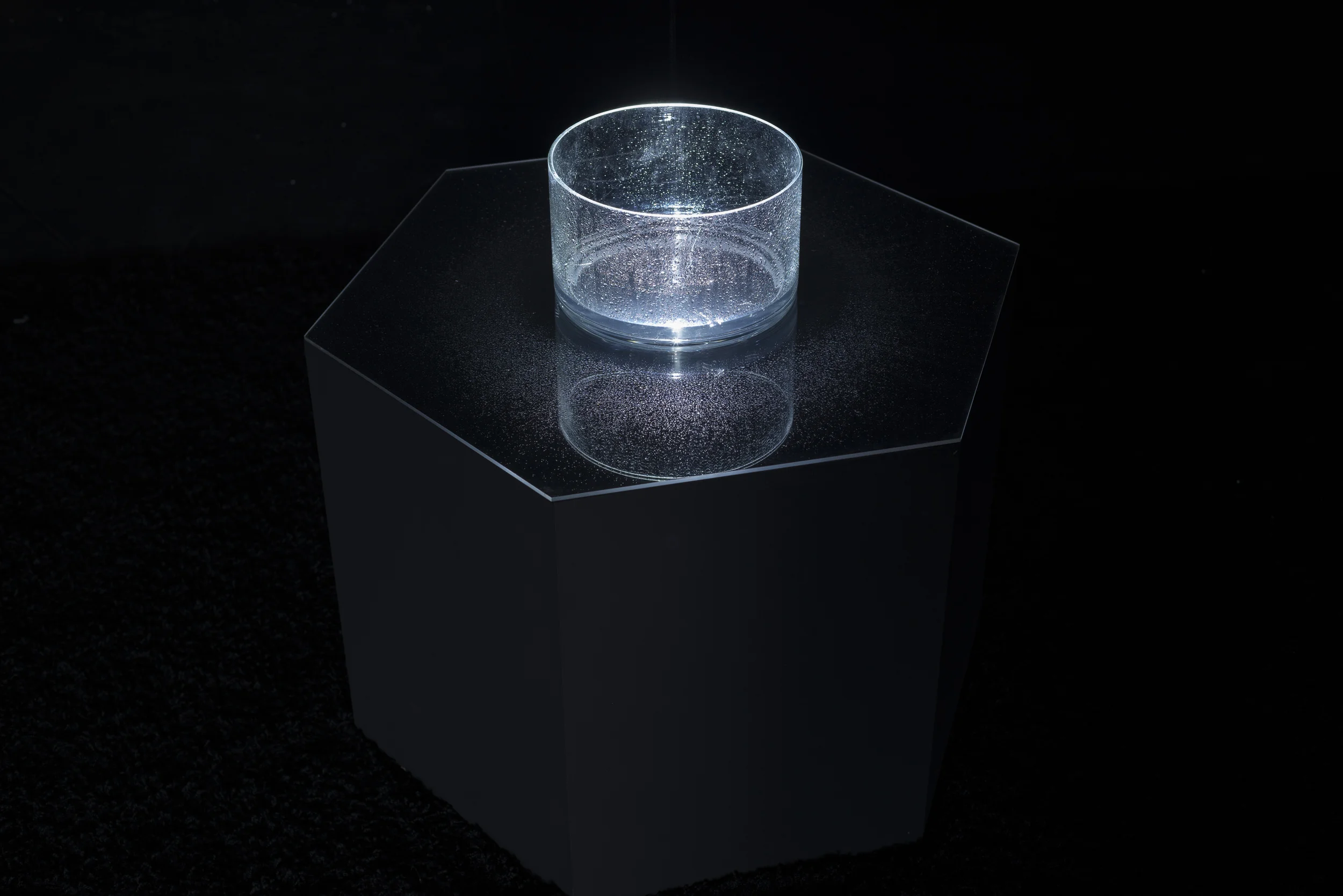 This installation, inspired by ancient water clocks, was located in the tower above the Mills College Art Museum. This elemental work invited viewers to experience the passage of time in a different way, and to consider how a very simple act — a consistent sequence of water drops — can not only keep time, but it can alter the light and sound of the space around us.